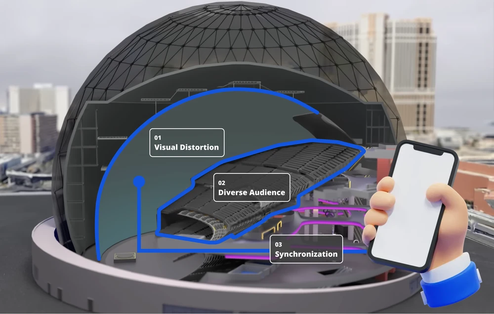 Sphere hosts concerts, movies, and sports events, bringing in a wide range of attendees. To maximize engagement, we explored how to combine the massive spherical display with personal devices and leverage its unique features, creating quick, easy-to-understand interactive experiences.